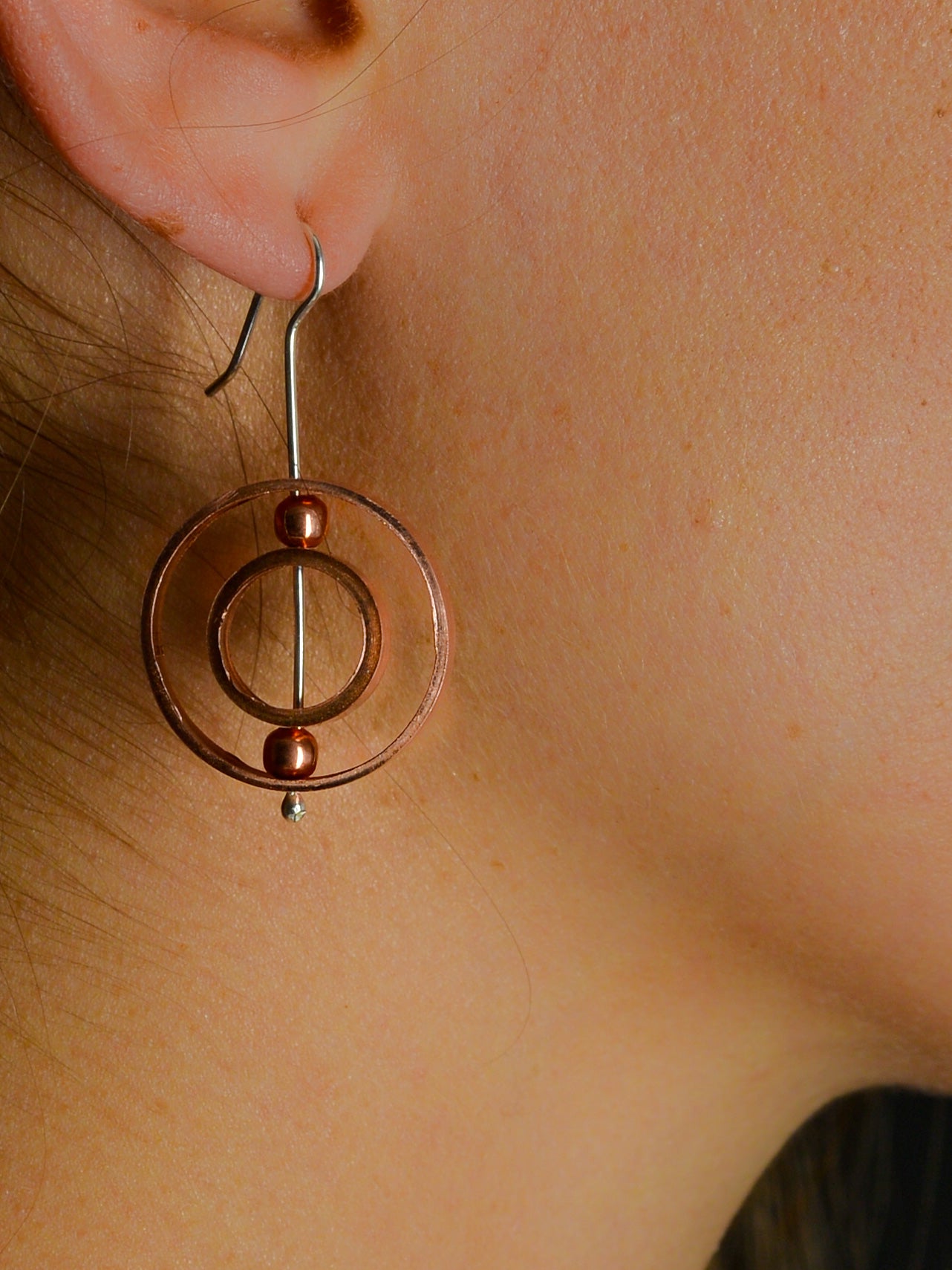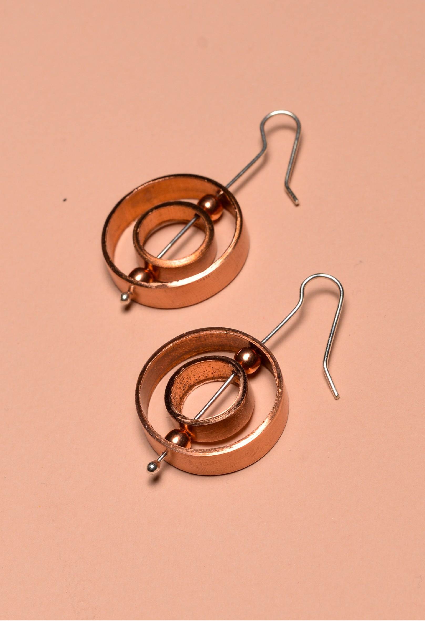 Aros de cobre con vástago de plata.